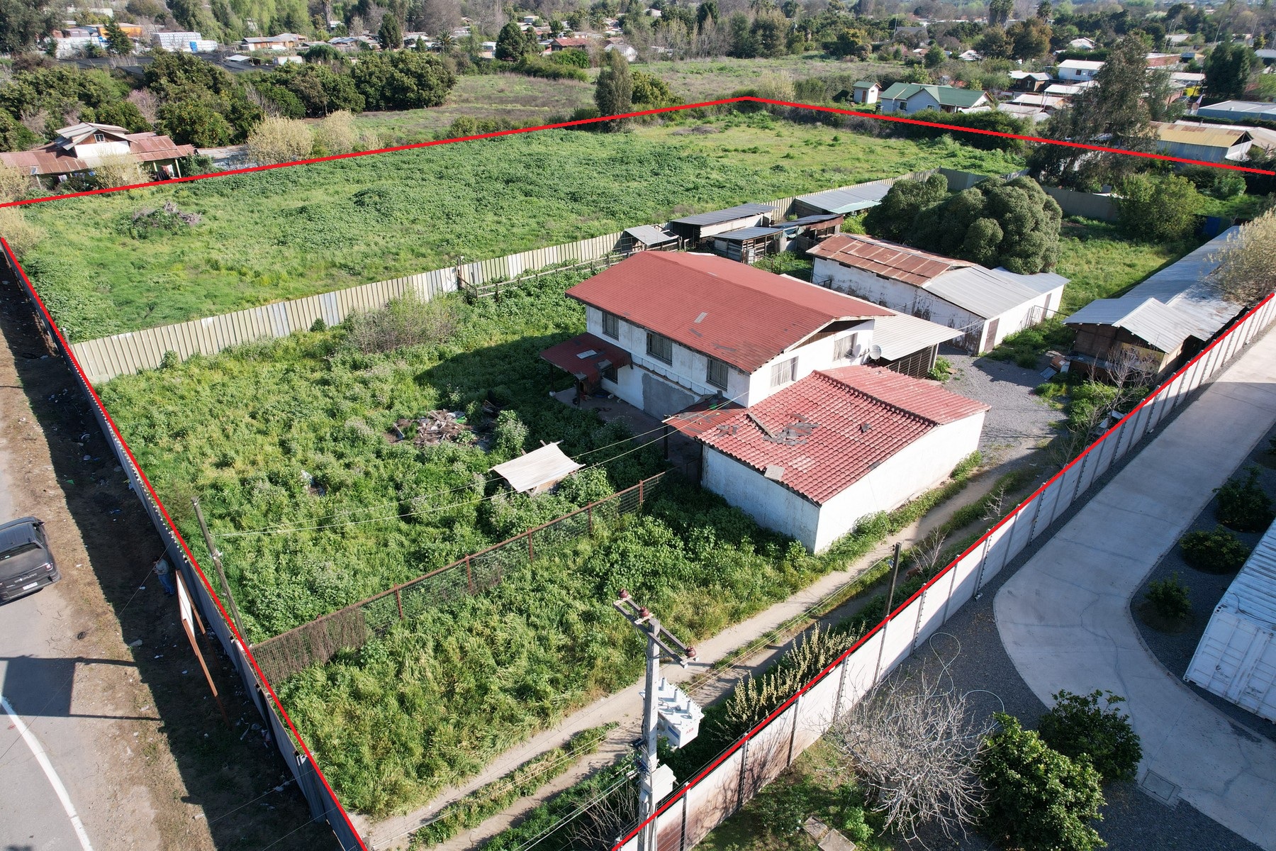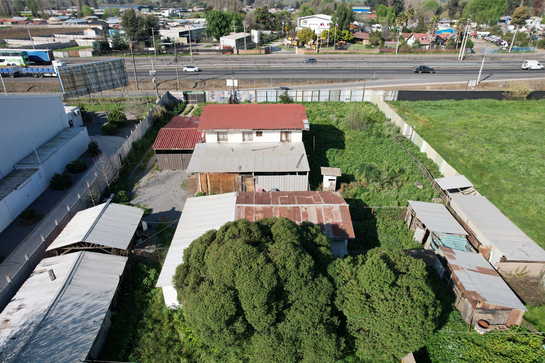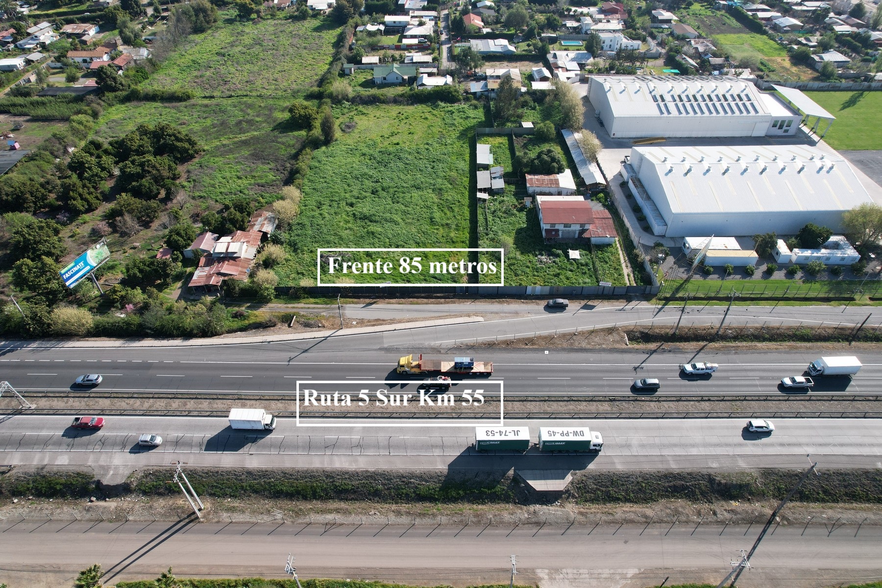 Terreno con excelente ubicación de 9.019 m2, lado poniente de la Ruta 5 Sur Km 50, con 85 metros de frente. Con muy buenos accesos y salidas a la autopista. Tiene agua potable, luz eléctrica, casa de 230 m2, bodega y galpón.